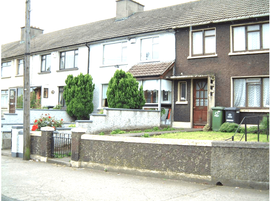 However, not all front gardens have this essential requirement of low boundary walls and fences. Our photographic survey revealed interesting contradictions with regard to the differing heights of the boundary walls and fences. Only in some of the rather exclusive, middle-class areas did we observe high and thick street boundaries, mainly in the form of privet hedge or high concrete walls. High boundaries hardly figured at all in the less exclusive neighbourhoods, and rarely on the street but some did exist between neighbouring gardens. Only eight out of the fifty residences investigated had such high street boundaries. Castleknock and Templeogue displayed the highest number (three each) of such boundaries. Overall, the reliance on high boundaries to protect privacy was not very widespread. More crucially perhaps, such boundaries were used to screen residents more from their neighbours than from the public gaze. High neighbouring boundaries protected the panoptic inspector from receiving similar surveillance to that he/she was engaged in and created a more exclusive form of privacy by preventing people looking in from the street. To use Foucault’s terminology, the sidewalls prevent him (now the panoptic inspector) from coming into contact with his companions (his immediate neighbours). This is especially true when solid gates compliment the high boundaries, creating a completely enclosed space which guarantees privacy by excluding all forms of public intrusion while allowing sufficient natural light to reach the house. More importantly, these contrasting functions – eliminating public gazing and getting adequate light – can only be achieved through adequate spatial distance between the house and the front boundary. Our observations show that the necessary space for absolute privacy is hardly ever available in less exclusive neighbourhoods. Instead, high street boundaries are an attribute of the properties of rich suburban dwellers.